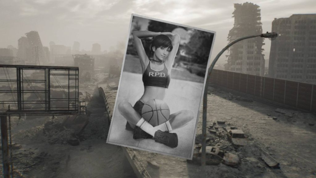 Once you take control of Leon, start heading south on the street where you can find this file on the pavement to the right, along with some discarded trash bags. It’s just a few steps in front of Leon’s car.