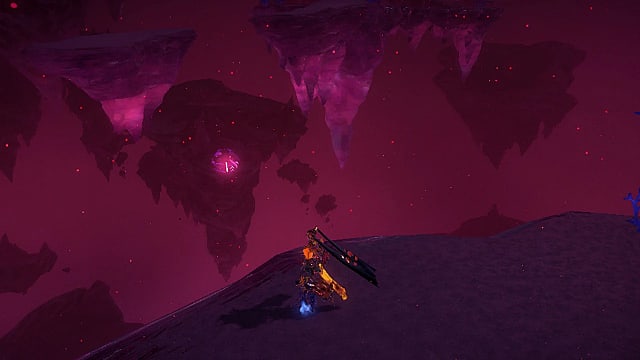 Replay the first chapter to find the first key. From the menu, choose to start at Ginnungagap, the Chaotic Rift. After completing the combat section in Verse 4, jump to the next platform with flowers. Pan the camera until you’re looking to your left and slightly behind you. You’ll see a blue key floating behind a rock on the island you came from.