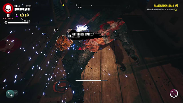 - #3: Send Home the Clowns: This is a tough one to find. During “Boardwalking Dead,” one of the zombies you kill along the Santa Monica Pier may drop the Photo Booth Staff Key. I got it off a Shocking Walker (below).