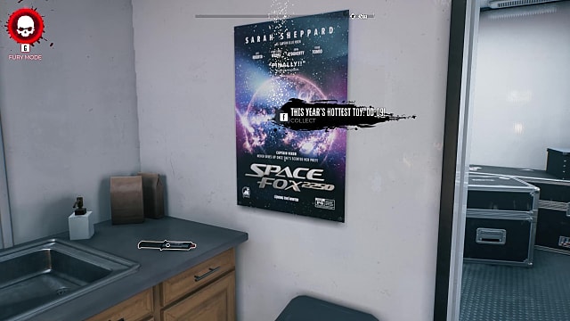 - #9: This Year’s Hottest Toy: DD-09!: Go into the unlabeled trailer in the Monarch Studios zombie-free zone and check out the Space Fox poster on the wall. This is easy to overlook by day, as the glow that tells you it’s a collectible blends in with the poster.