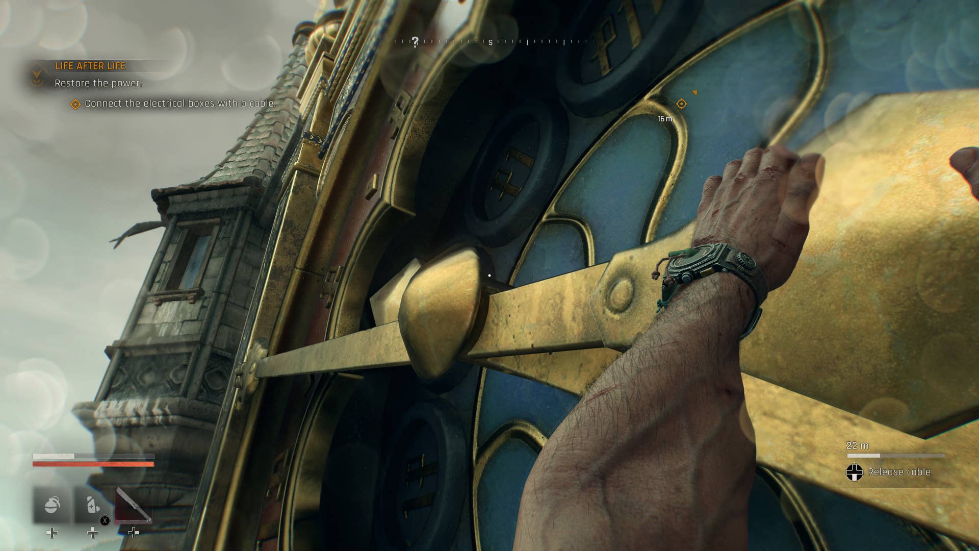 With the spotlight firmly on the action, it’s genuinely, enormously entertaining. That’s particularly true when the gore-strewn mayhem is working in tandem with Dying Light: The Beast’s deft parkour system, and events conspire to send you into traversal overdrive; when, say, you’re careening violently through cramped streets, springing heroically up onto overhanging ledges, then lunging – little legs flailing – across wonky rooftops and gaping alleyways, smashing zombie heads as you go. And there’s a different kind of thrill to be had as the dark night falls, when your spring-heeled adventures take a considerably more tense turn against creatures powerful enough that evasion is your only hope. It’s good stuff!