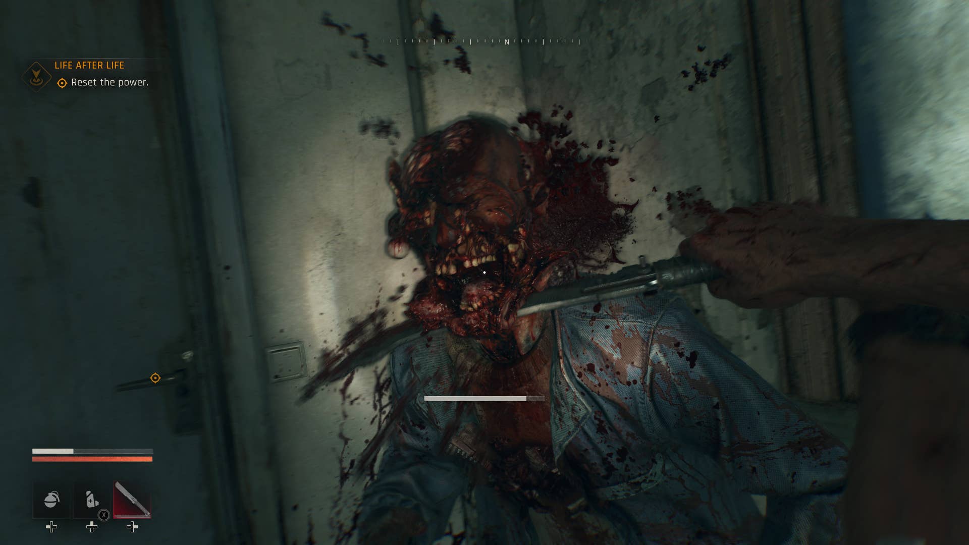 Thankfully, their presence is easier to tolerate when walloping them proves to be so endlessly satisfying. The Beast remains a game of ad-hoc weaponry, where a spade can be as useful as a machete in a pinch. You’ll scour the world in search of bludgeoning tools and firearms, gather resources to craft into upgrades, then just pulverise and smash your way from one objective to the next – sending zombies rag-dolling off rooftops, or giggling as a suddenly detached limb takes flight. And this time, for reasons lost amid the glassy eyed exposition, Crane has a super-strength Beast gauge (and associated ability upgrades) you can trigger intermittently in order to unleash fist-flying carnage, squishing heads and ripping off arms in a blood-soaked frenzy.
