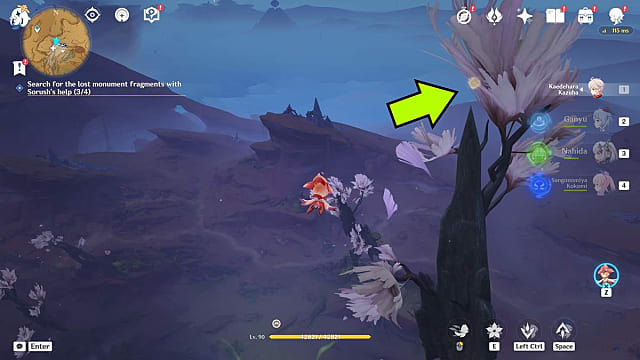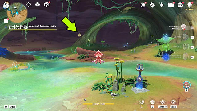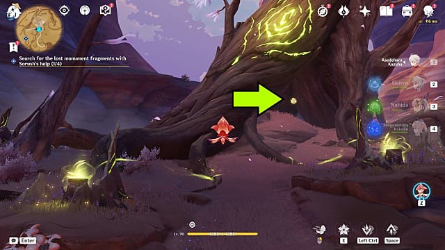 In any case, the Lost Monument Fragments look like diamond-shaped glyphs. However, the Lost Monument Fragments are completely invisible and you can only see them if you switch to Sorush. Once you spot them as Sorush, just glide to the object and she’ll automatically pick it up.