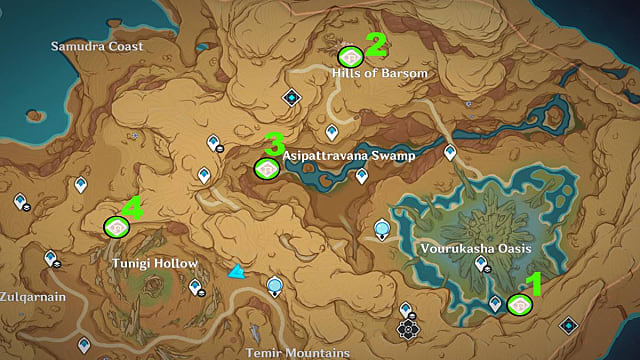 Sosi will lead you to a plateau in the western edge of the desert, one that has several stone altars. She’ll then mark Fatui camps on your map, so make sure you’re tracking this part of the quest.