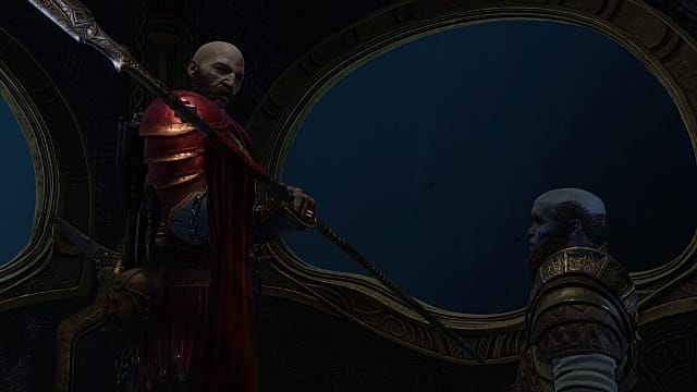 Now it’s cutscene time. You’ll watch as you and Brock descend into the kelpy water and give the Draupnir ring to the Lady, who then makes the Spear out of it with a little of Kratos’s blood. There are other story beats here, but we’ll save those for you to discover.