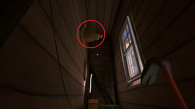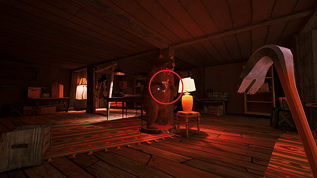 Once you reach Mr. Otto’s house, enter either of the first-floor windows (on the left or right side). You’ll be in the basement, with a taxidermied bear in the middle. Inspect the bear to take the switch for the bear puzzle later, then use the crowbar to pull the boards down blocking the chest on the left side.