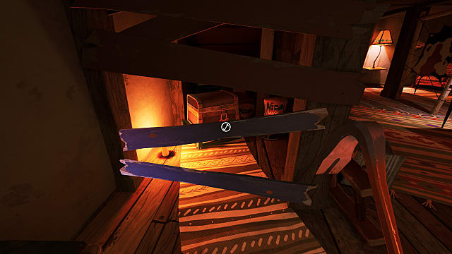 Solving this next puzzle requires you to interact with four boar’s heads throughout the house, and it’s the most difficult of the bunch. Each head will tilt downward and its eyes will glow when you’ve activated it. The catch is that the heads must be activated quickly; they will reset after a relatively short time. It’s best to familiarize yourself with their locations before attempting to activate them.