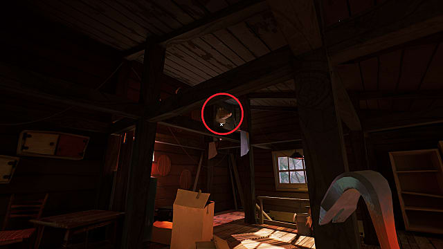 Letter B can be found in the same room as the taxidermied bear on the first floor, through the door on the wall with the holes, by the camouflage chair. Once through the door, turn left and climb up the hiding cabinet. There are numerous antlers mounted to the wall, but high up, you’ll notice one mount without any antlers. Instead, the Letter B is on it. Climb up the platforms to get it.