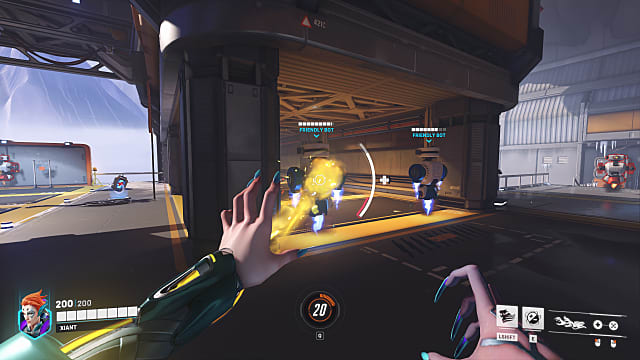In most cases, you’ll only have three or four seconds to deal damage before you need to return to healing, so try to stay close to your teammates. The damaging beam goes through friendlies, so you don’t need to see who you’re attacking to affect them. However, you will want as much visibility as possible to focus on the largest threat, usually a DPS character.
