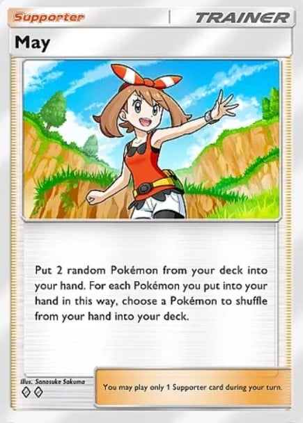 This is honestly one of the best Supporters ever in the game, and is going to find extensive usage even in future sets and decks. The best part is that since Communication is an Item, you can use it alongside May to heighten your chances of setting a stronger hand.
