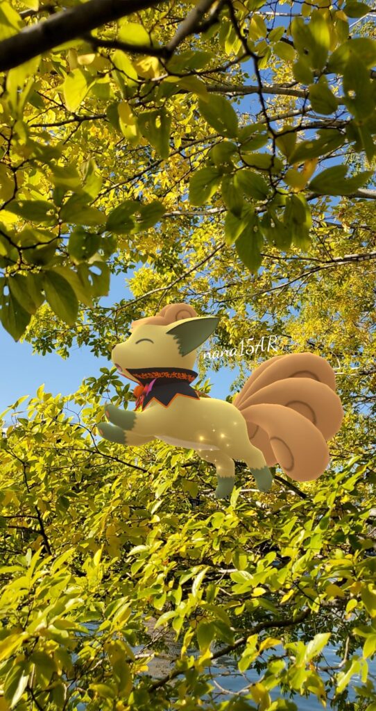 ‘I know September has only just begun but as soon as August ends I am ready for the Halloween season and so is my little shiny costumed Vulpix (who happens to be a shundo and my best buddy). We love to explore the cemetery and frolic around the fallen leaves and enjoy the cooler weather. Nothing better than breathing in and getting the smells of leaves in the air!’
