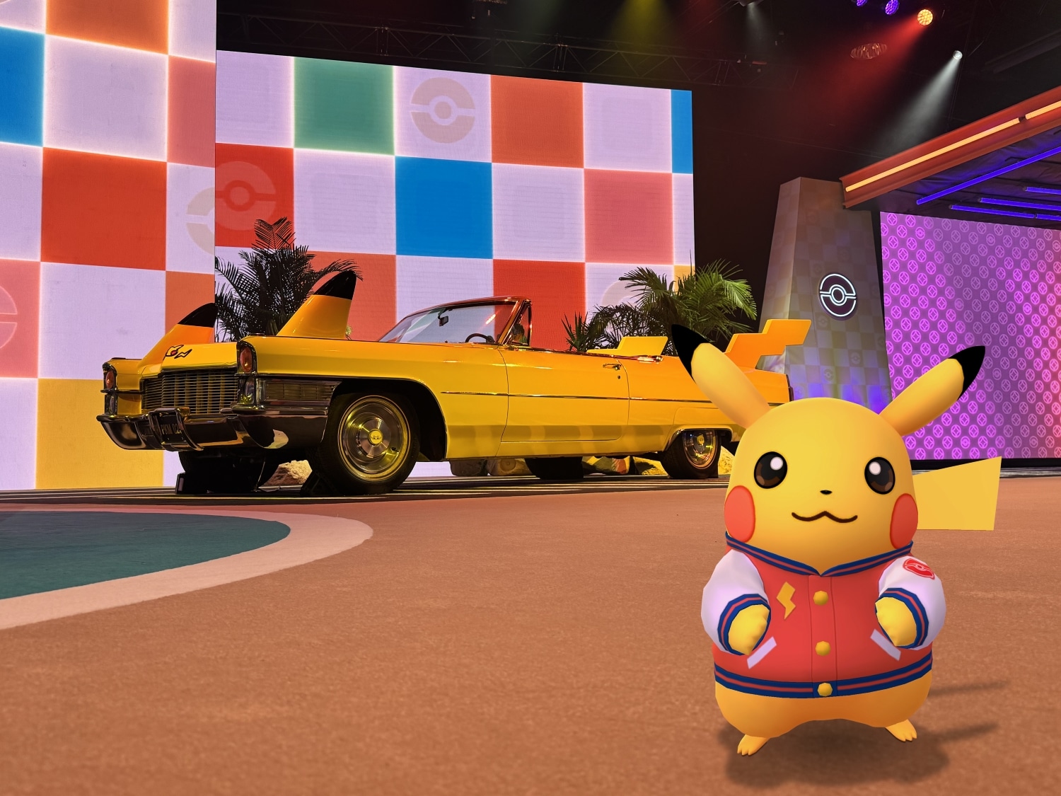 ‘Pikachu dons a letterman varsity jacket in front of the car used in promotional materials for the 2025 Pokémon World Championships in Anaheim, CA. Since this is the latest costume Pikachu and I was physically present for the event it represents, I thought this would be perfect for the costume part of this showcase.’