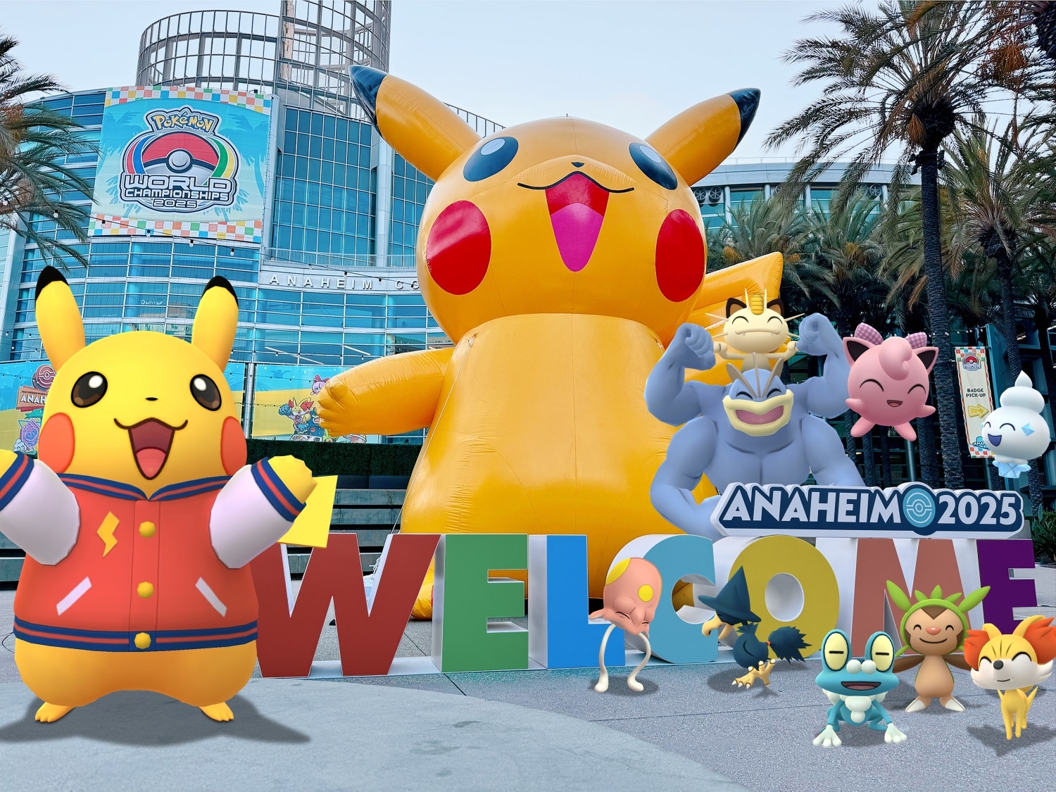 ‘A giant inflatable Pikachu with the Anaheim 2025 logo was placed in front of the Anaheim Convention Center for this year’s Pokémon World Championships. Spectators were taking photos of themselves and their friends/family in front of the giant Pikachu to capture the moment. Naturally, I did the same, but for the Pokémon included in this year’s promotional art, with Pikachu in a varsity jacket taking center stage.’