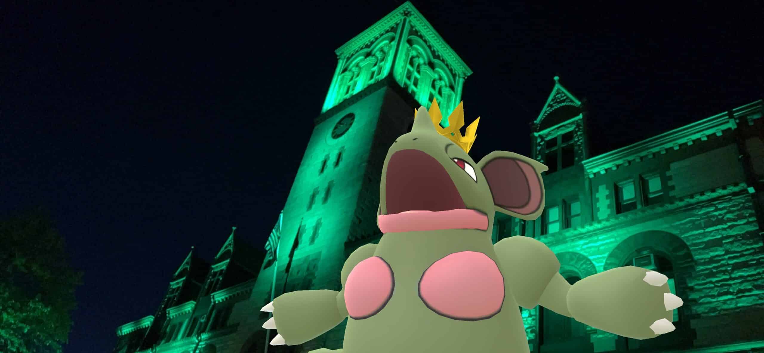 ‘Nidoqueen and Nidoking’s costumes are so simple, but so amazing. The day I caught the Shiny Nidoqueen, Cambridge City Hall was lit up with green lights. It was the perfect backdrop for an AR photo! I tried a lot of different angles, as I wanted to make Nidoqueen seem powerful and regal while also getting the top of the building in the photo. I’m really pleased with the end result!’