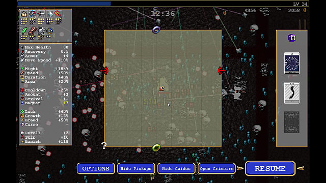 The first is simple: VS is built in a way that makes it more difficult to survive if you’re constantly on the move, because you aren’t focusing on scoring kills and picking up experience gems. By its nature, you have to chase the Skelemari down.